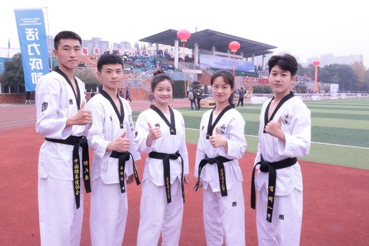 2020年11月12日,“爱成都 迎大运”“中国体育彩票杯”郫都区青少年锦标赛在郫都区实验学校召开。应郫都区教育局扩大赛事影响的响应,我队队员应邀参加本次开幕式表演。此次开幕式共来自全区公民办中小学校共60支代表队700余名参赛队员参加。本次开幕式表演,旨在提倡全民健身,宣传跆拳道运动,普及中小学生对跆拳道的认知,宣传跆拳道忍耐克己,百折不屈的坚韧品格,同时促进郫都区的跆拳道事业的发展。在此,感谢